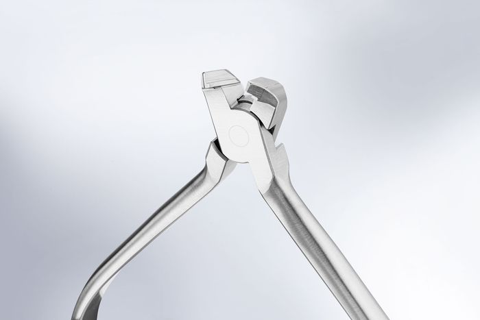For shortening the archwire ends in the multi-bracket technique. Robust design. Wire holder. Inserts made of hard metal.