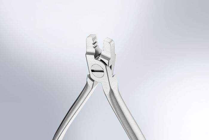 For individual construction and activation of lingual/palatal bars. Using these pliers, the bent tips of the wire will fit into all Dentaurum lingual/palatal tubes ⌀ 2 x 0.9 mm.