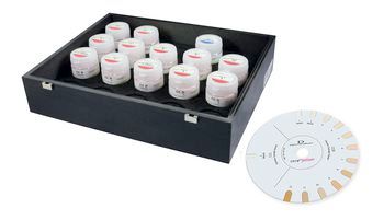 The set produces all the hues of the shade guide of other suppliers (e.g. Vita 3D-Master®* or Ivoclar-Chromascop®**).
