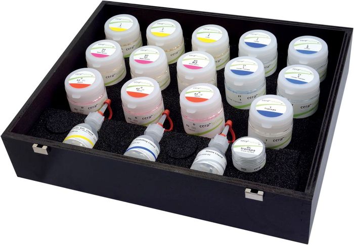 Set for veneering zirconium oxide and lithium disilicate.