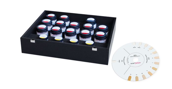 Contains 17 ceramic materials including Paste Opaque, Dentins and bleach modules.